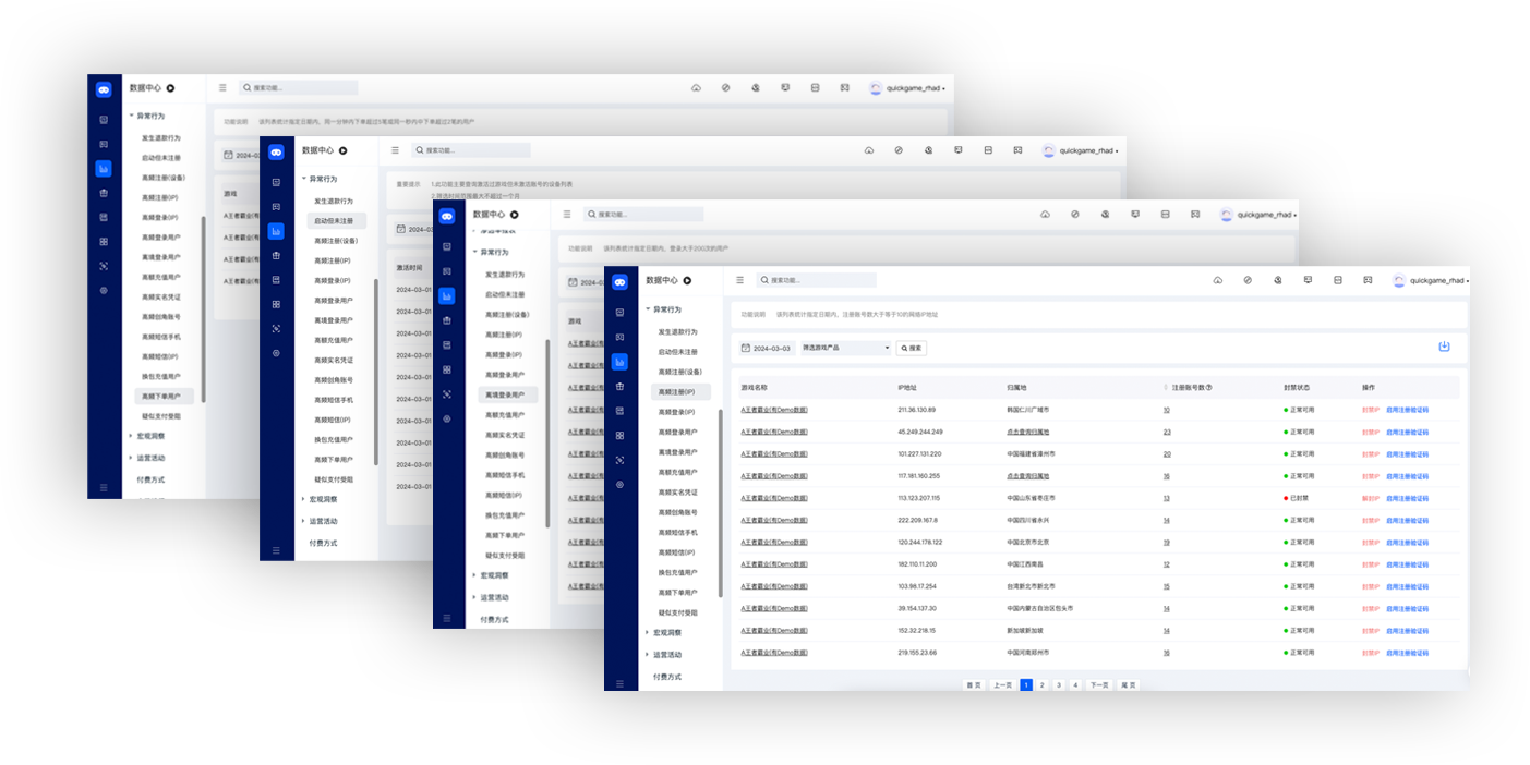 针对刷号,系统提供封号、封设备、封IP、人机验证操作