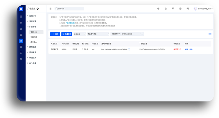 2.云端分包一键生成投放链接,快速生成落地页、短链,根据手